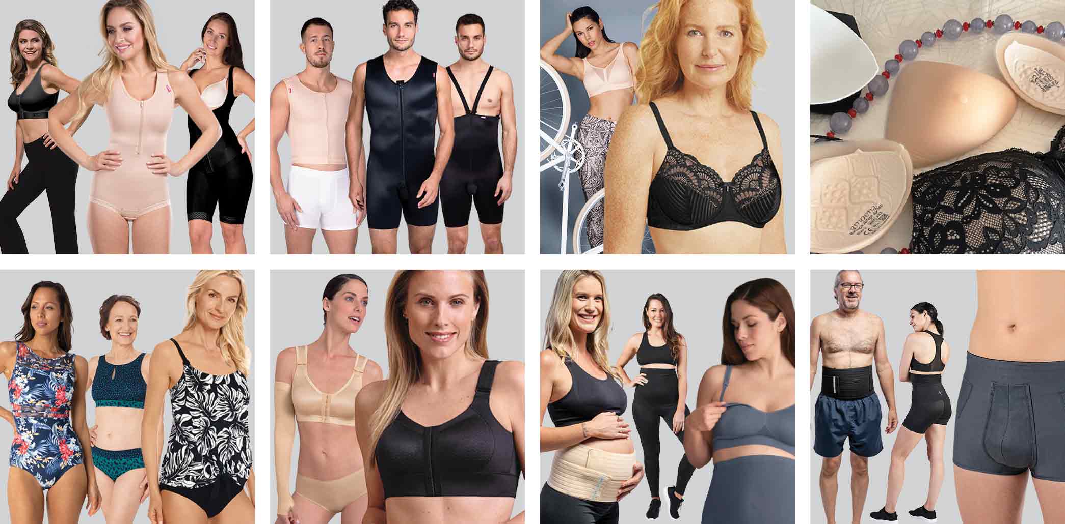 Our male and female post-surgery compression garments include binders, body suits, briefs, face masks, girdles, leggings, shorts, compression sleeves and vests. We have post-surgery compression bras for all breast surgeries. And we consistently receive positive feedback about the NewGel scar management products we stock.